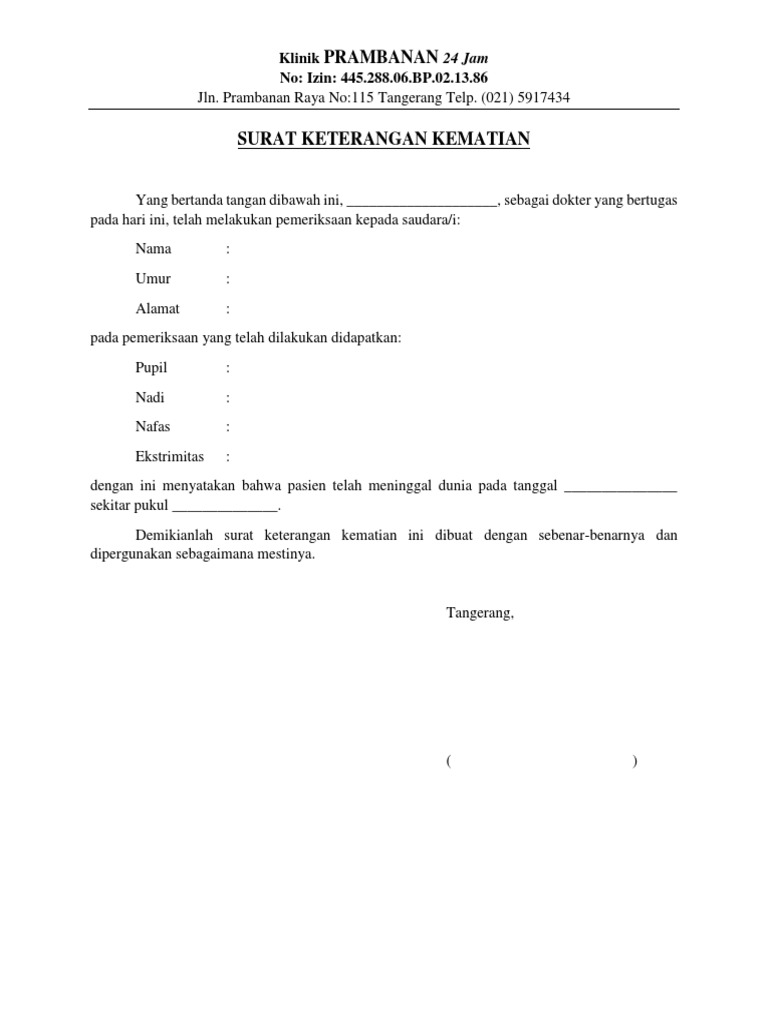 Surat ini dianggap sah menurut hukum, sehingga mereka yang tercantum namanya dalam surat keterangan tersebut, secara hukum dianggap berhak atas warisan. Sertifikat rumah biasanya diperlukan, misalnya, jika tinggal di area tertentu dan belum mengganti ktp di area baru. Demikian surat keterangan kematian ini kami buat sejujur jujurnya diberikan untuk dapat dipergunakan sebagaimana mestinya. Klaim bpjs kesehatan karena mengalami kecelakaan. Seorang karyawan tentu membutuhkan contoh surat keterangan penghasilan atau gaji karyawan ini. Dengan mencari langsung contohnya di google mungkin kita bisa mendapatkan format surat keterangan kematian yang kita butuhkan jika kita menggunakan kode di atas. Penetapan formulir dan laporan pencatatan perkawinan atau rujuk. Demikian surat keterangan penelitian ini dibuat untuk digunakan sebagaimana mestinya. Surat keterangan kematian pada umumnya diterbitkan oleh rumah sakit. Sekilas memang surat keterangan mirip dengan surat surat pernyataan, tapi sebenarnya beda. Contoh surat undangan rapat sekolah dengan orang tua. Surat keterangan kematian dan penguburan. Sementara surat keterangan yang dikeluarkan oleh kelurahan.